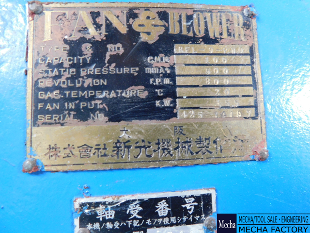 ・風量 100CMM/静圧 500mmAq/回転速度 800rpm/温度 20℃/出力 15.5kW