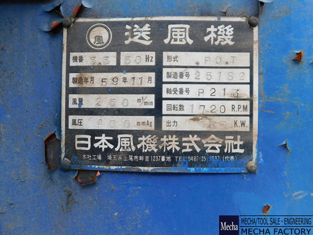 ・風量 250m3/min/風圧 400 mmAq/回転数 1720rpm/出力 37kW