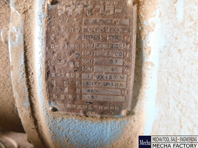 ・ロープ引張力(kg): 1300(50Hz)/1000(60Hz)