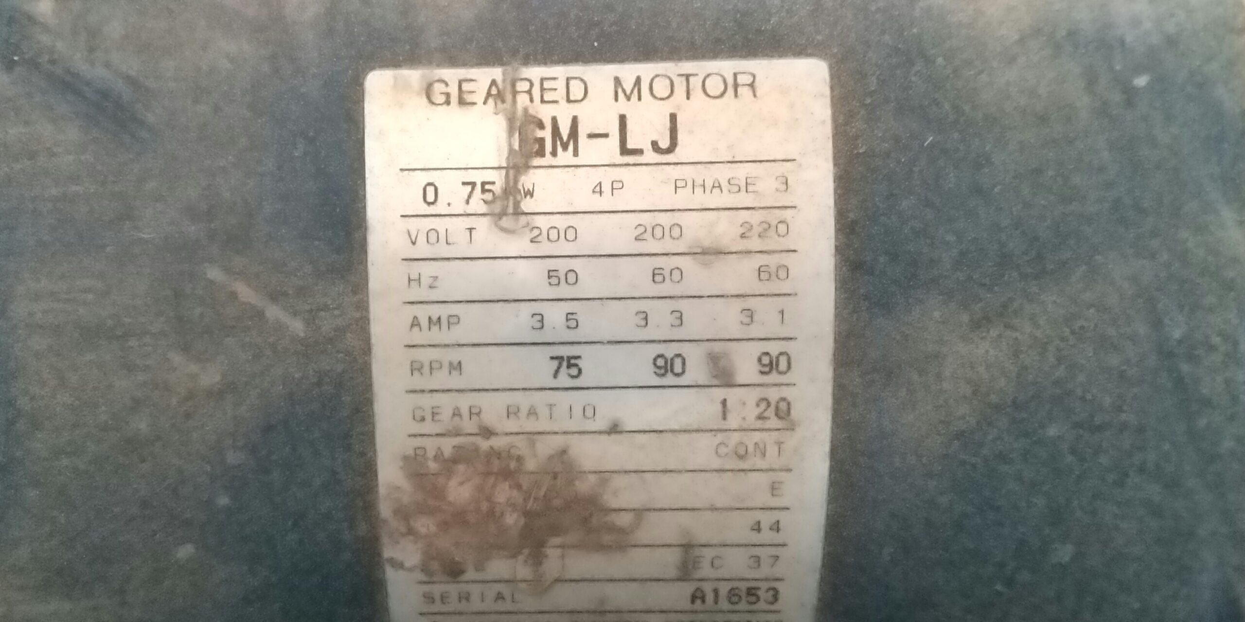200V(50Hz、75rpm)