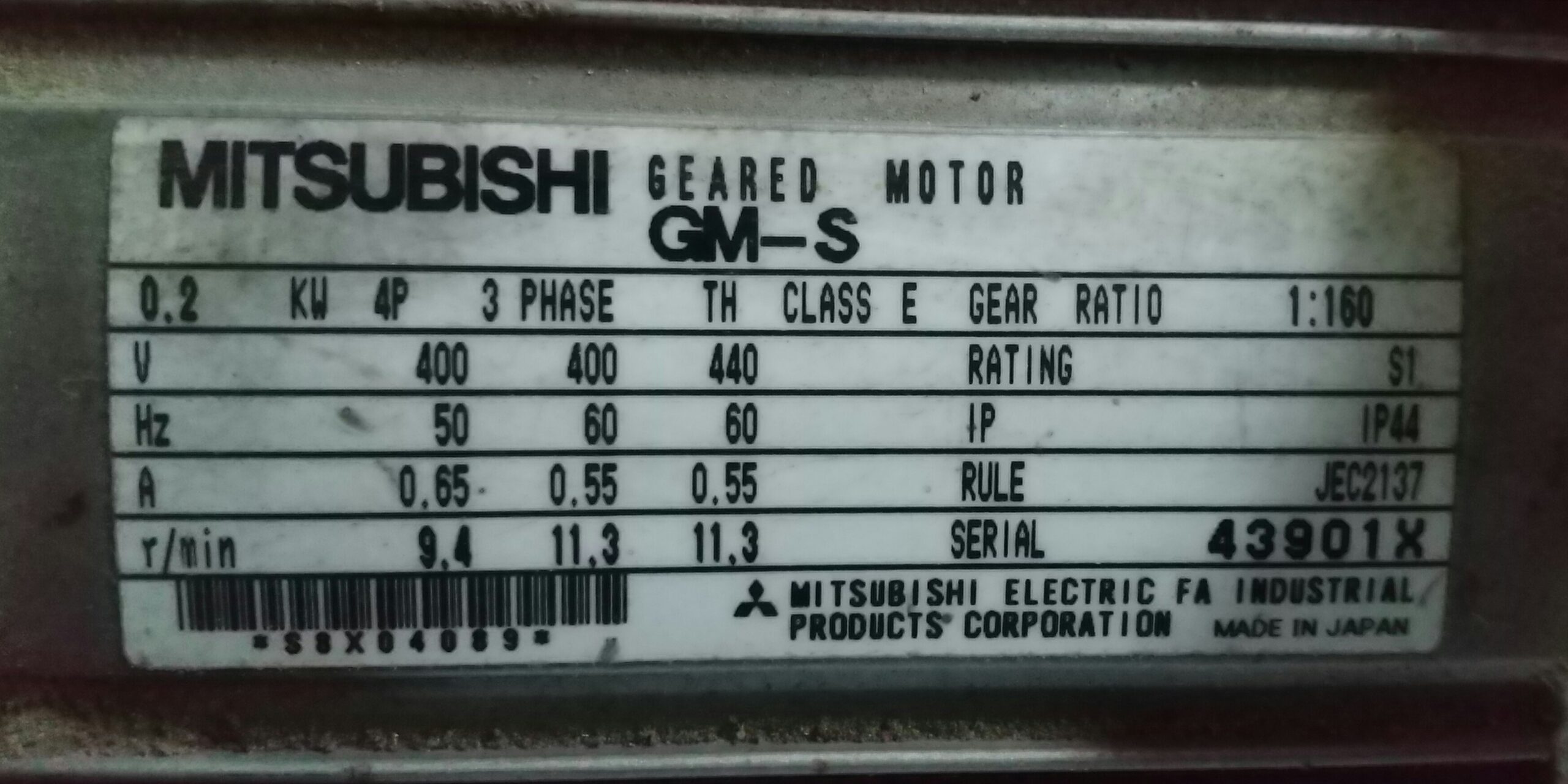 440V(60Hz、11.3rpm)